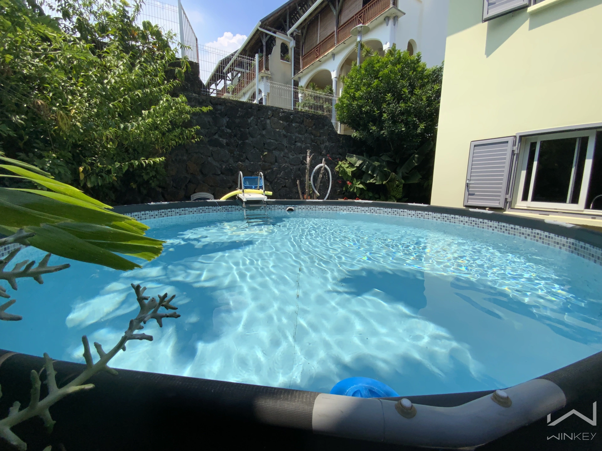 Une piscine hors sol, incluse dans la vente, vous permettra de profiter des beaux jours en toute convivialité. Un petit cagibi attenant, idéal pour garer une moto ou aménager un atelier, complète cet espace.