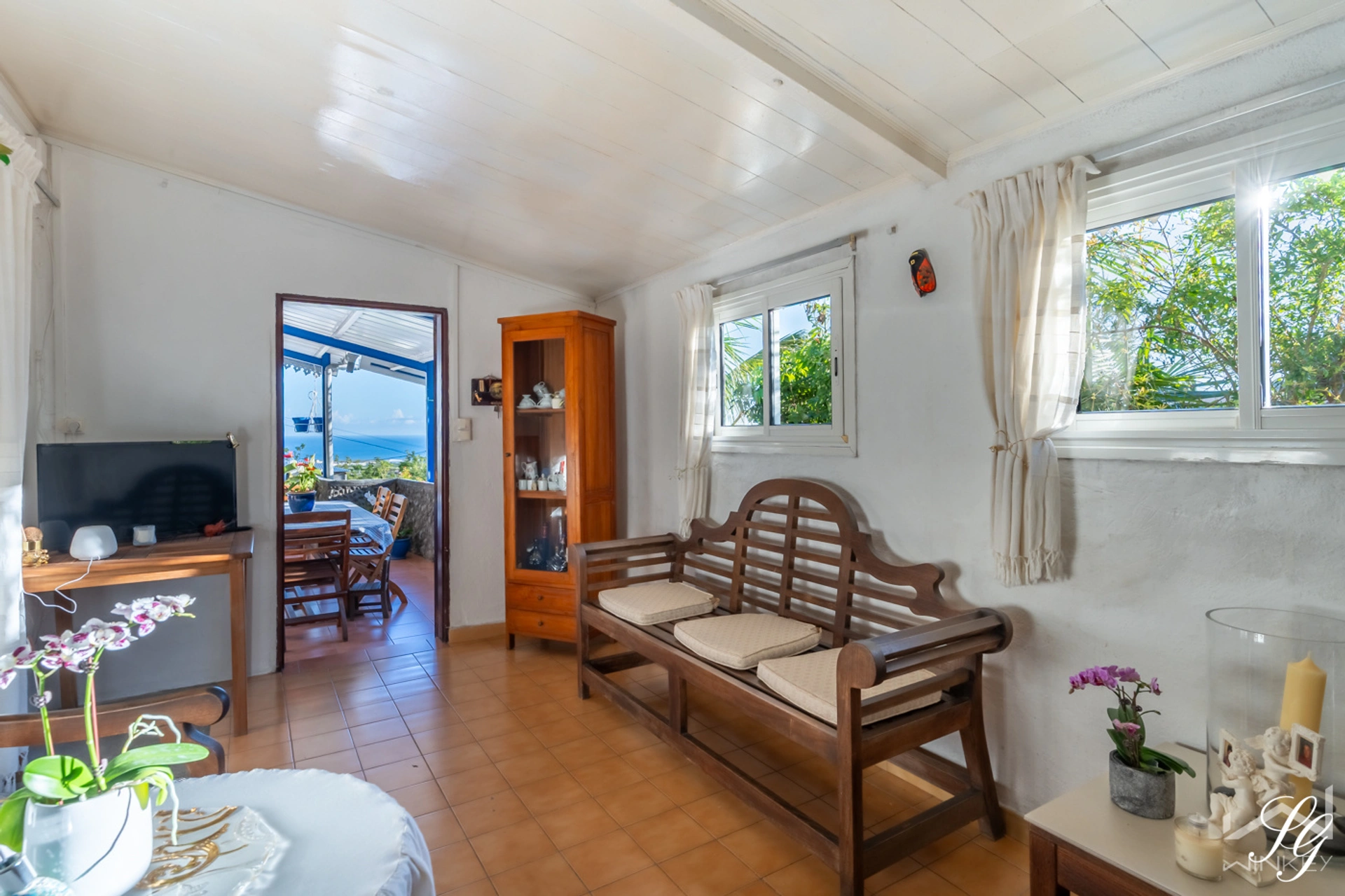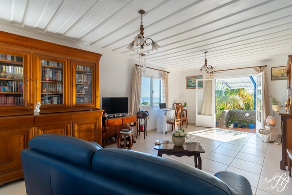 Volumes & Cachet : Un séjour de 27 m2 magnifié par un authentique plafond créole. Une base architecturale solide et pleine de caractère.